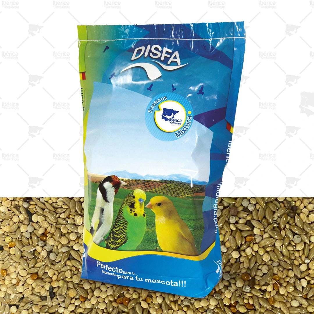 Mxt. Exóticos (Disfa): Exquisita mezcla de semillas especialmente formulada para la nutrición de pájaros exóticos de pico corto como Diamantes de Gould