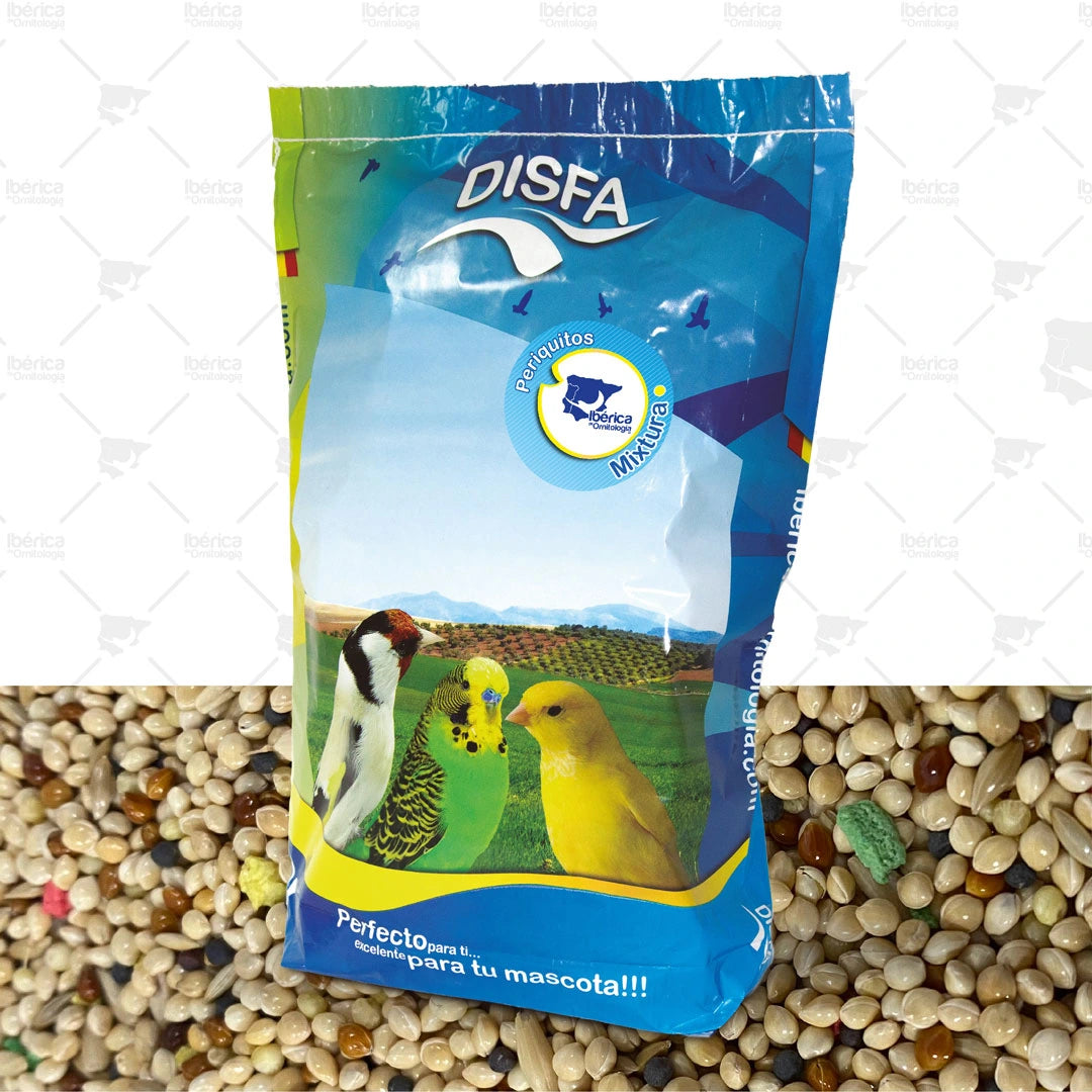 Mxt. Periquitos (Disfa), Mistura de sementes de qualidade extra para garantir a nutrição ideal dos Periquitos em qualquer época do ano, ideal para melhorar aspectos como muda e reprodução. Alimento muito apetitoso e energético com amplos benefícios para o corpo e para a saúde.